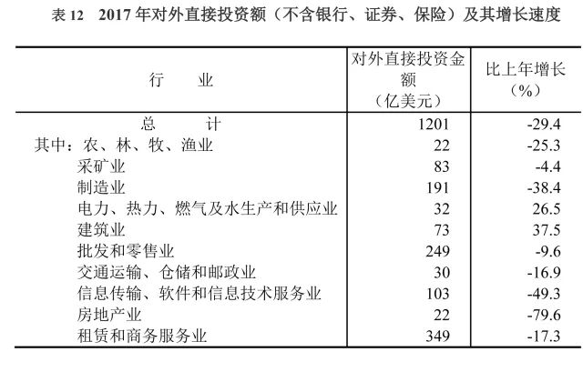 在對外投資方面,2017年我國在建筑業(yè)方面的對外直接投資額(不含銀行、證券、保險(xiǎn))為73億美元,比上年增長37.5%。全年對外承包工程業(yè)務(wù)完成營業(yè)額11383億元,按美元計(jì)價(jià)為1686億美元,比上年增長5.8%。