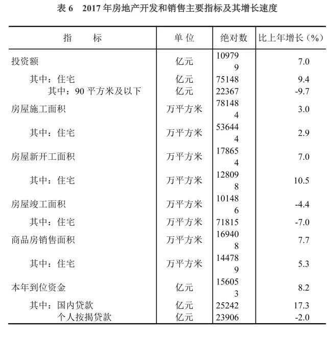 統(tǒng)計(jì)還顯示,2017年我國房地產(chǎn)開發(fā)投資109799億元,比上年增長7.0%。其中住宅投資75148億元,增長9.4%;辦公樓投資6761億元,增長3.5%;商業(yè)營業(yè)用房投資15640億元,下降1.2%。