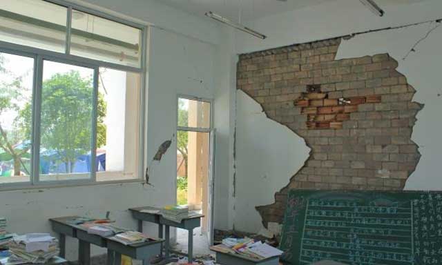 2)調查校舍現在與原始資料相符合的程度、施工質量和維護狀況,發現相關的非抗震缺陷和是否存在局部損傷,并對現有校舍的缺陷損傷進行專門分析,抗震加固時一并處理。