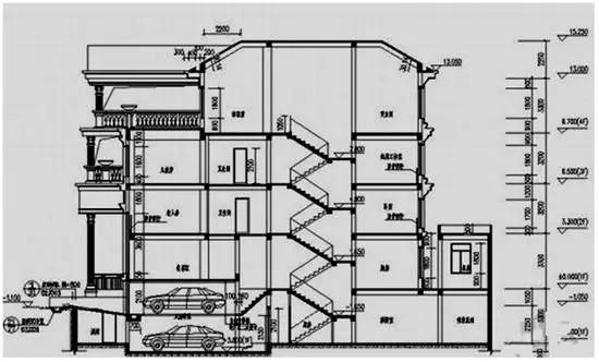 3、室外地坪,室內(nèi)地面,樓層地面,屋頂標(biāo)高是否標(biāo)注?所剖的墻體是否有定位軸線(xiàn)? 4、地坪線(xiàn)與剖到墻體的關(guān)系是否正確?先有室外地坪線(xiàn),砌墻,再回填室內(nèi)地面,因此墻將室內(nèi)外地平線(xiàn)斷開(kāi),如圖,你的是否正確?