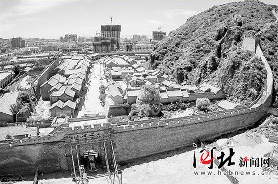 正在施工的明長(zhǎng)城大境門段城臺(tái)加固保護(hù)工程。張家口市在做好旅游資源開(kāi)發(fā)的同時(shí),對(duì)大境門進(jìn)行了全面景區(qū)修復(fù)和綜合開(kāi)發(fā),如今雄偉的大境門與仿古步行街相得益彰,成為該市文化旅游的一張重要名片。