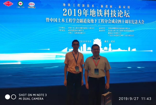 中國土木工程學會隧道及地下工程分會成立40周年暨2019年度地鐵科技論壇于2019年9月26~28日在湖北省武漢市友誼國際酒店召開,我司辦公室副主任張琦先生代表公司應邀出席會議。